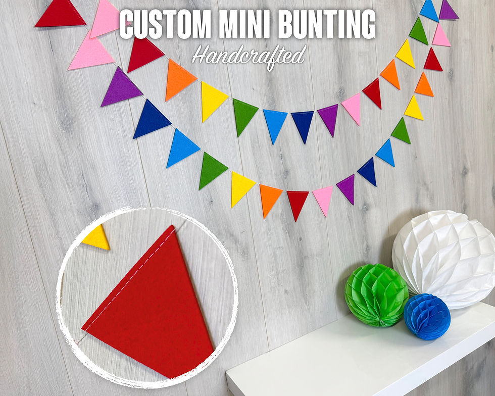 Design your own personalised bunting banner and make any celebration truly unique. Choose from a range of felt colours, lettering styles, and flag shapes to create a custom flag banner tailored to your event. Whether you’re decorating for a birthday, wedding, or baby shower, our bunting flags are durable, reusable, and designed to add a special touch to your party décor.